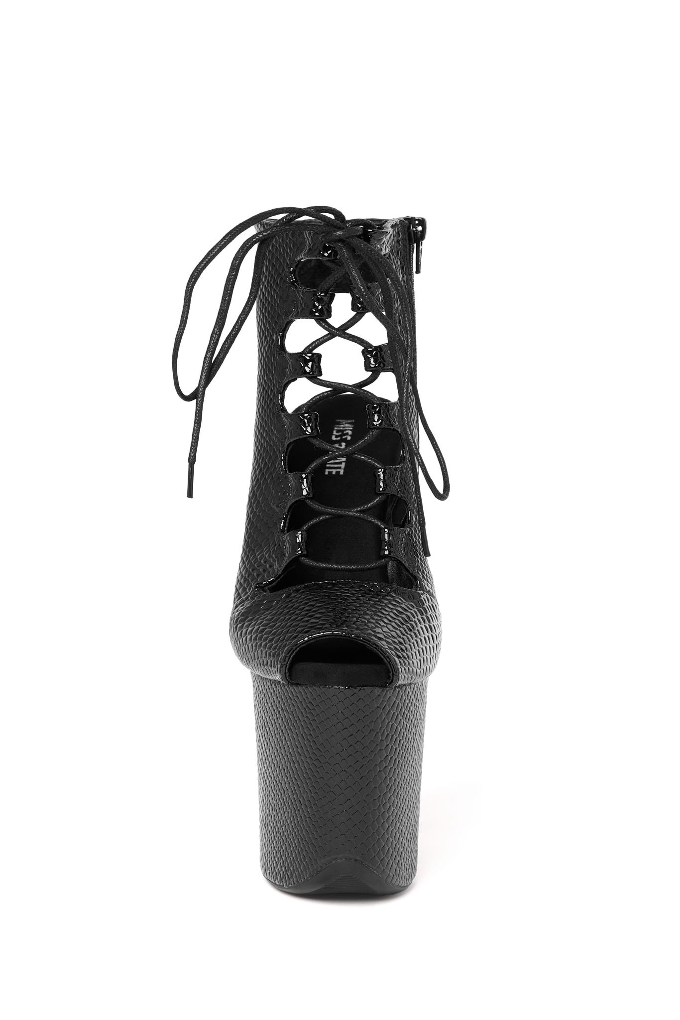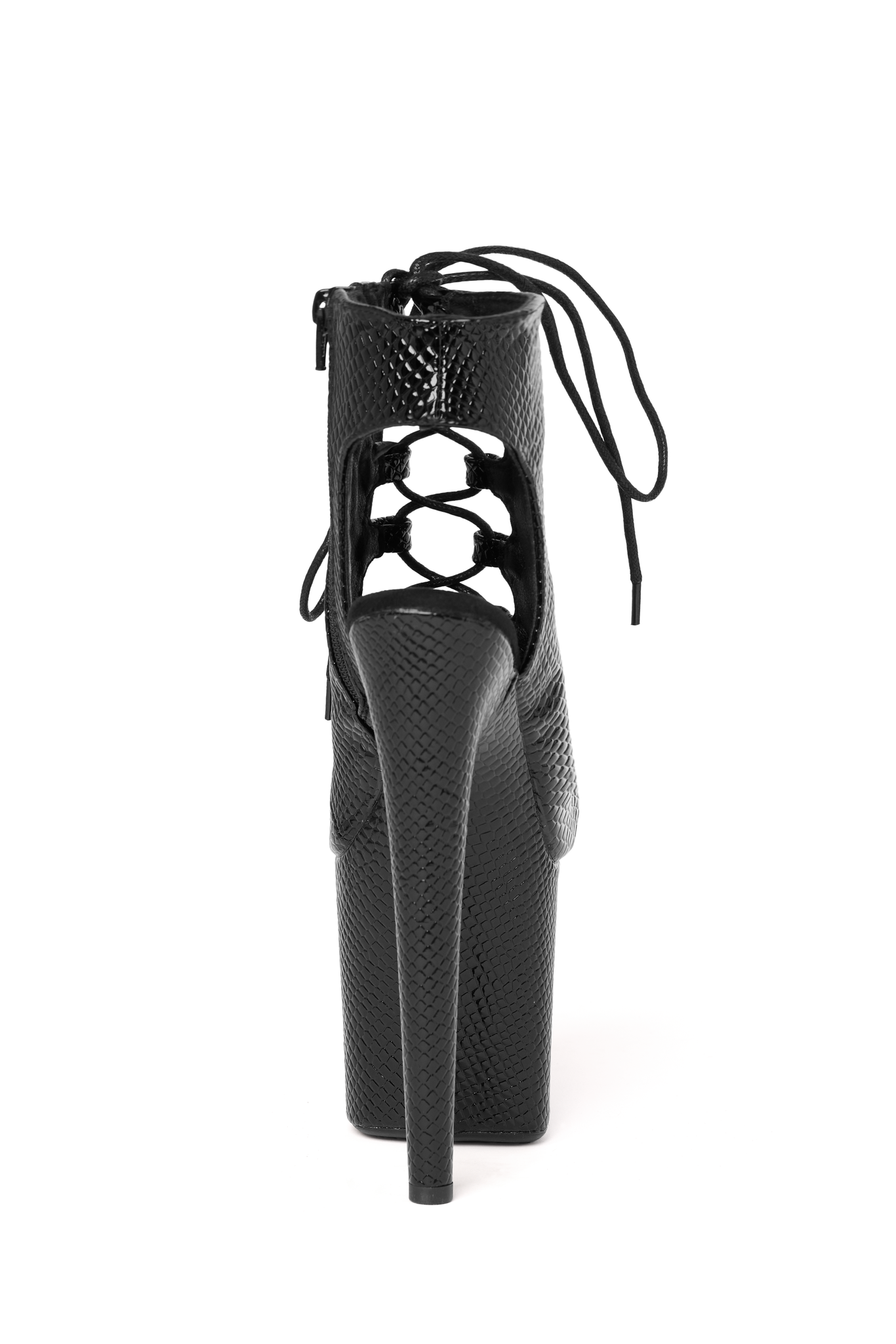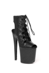 Czarne sznurowane botki na platformie do pole dance – Wysokie obcasy 20 cm, skóra ekologiczna z wzorem skóry węża
